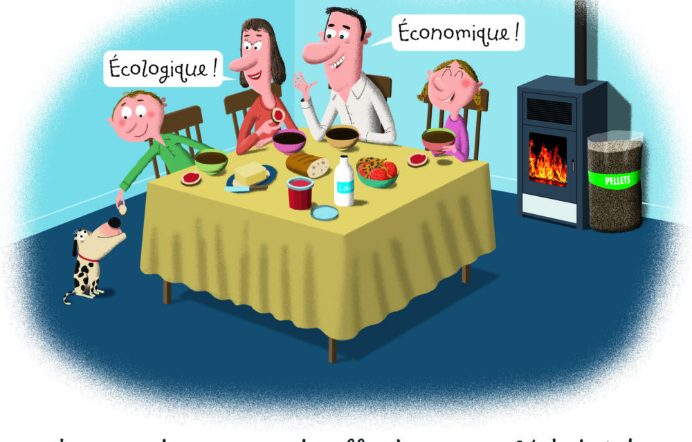 3 illustrations réalisées par Pronto sont déclinés dans une campagne qui montrent la satisfaction des utilisateurs du chauffage au granulé de bois.