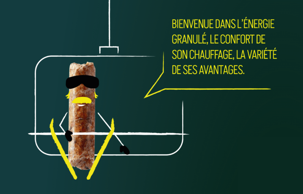 Mis en avant avec des visuels attractifs qui réfèrent à de grands classiques culturels, les principaux atouts des granulés de bois sont cette fois-ci présentés positivement : un choix vertueux, local, durable, économique, pratique et performant !